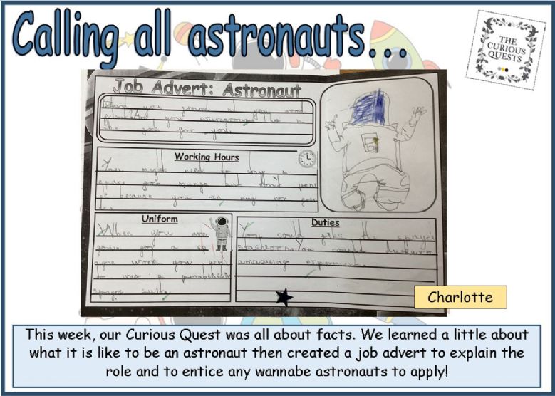 Alongside our daily phonics and maths sessions, our English lessons will see us trying our hand at Autumn poetry, creating a diary entry from the point of view of an alien, writing instructions to build a rocket, creating fact files and making a pop-up book about the moon landing. Moving on from our drawing club activities, Fireflies will also be introduced to Curious Quests as part of our English learning this term. We will certainly be kept busy!
