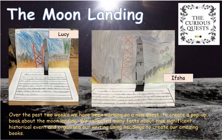 As you can tell, we will be reaching for the moon in this term's learning as we find out about the first moon landing in our History lessons. Our art work will also take on a space theme as we explore the art of Peter Thorpe and create our own rocket inspired paintings.