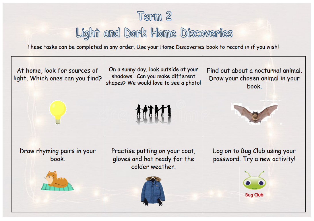 Please bring in your green Home Discovery Books at the end of the term please to show us. Thank you!