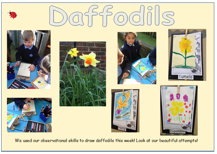 We enjoyed being very artistic whilst observing daffodils and using oil pastels and paint.