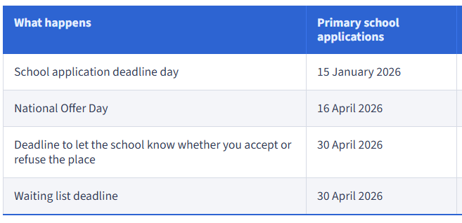 APPLYING FOR A PRIMARY SCHOOL PLACE FOR SEPTEMBER 2026